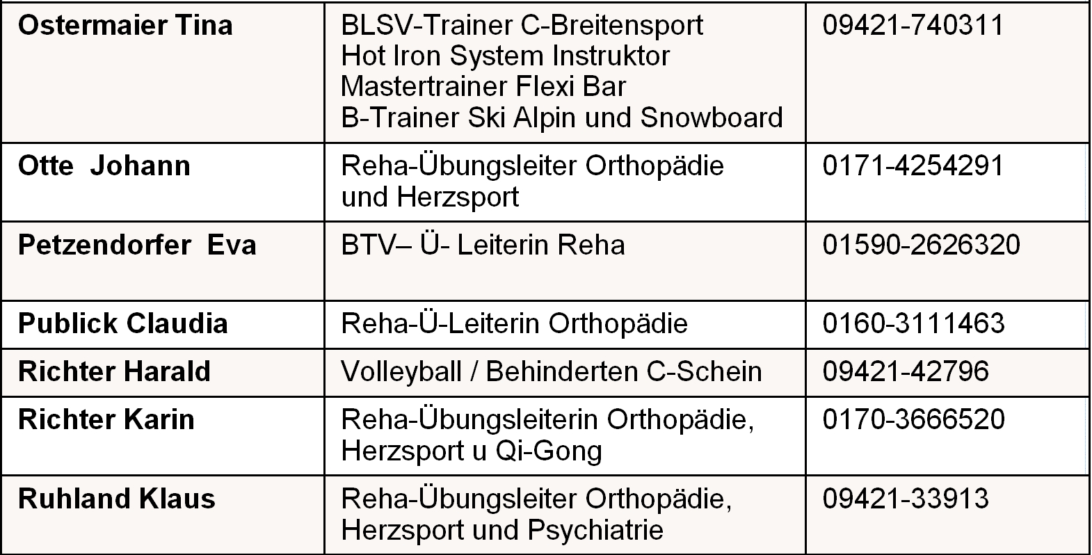 Trainingszeiten
